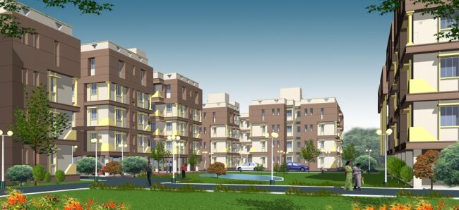 Low cost group housing project for Peerless Developers Ltd. comprising of 2 & 3 bed room flats of total area 1,80,000 sq.ft. at Sonarpur. Our Scope of work: Architectural, structural, utility service, electrical design and detailed supervision.